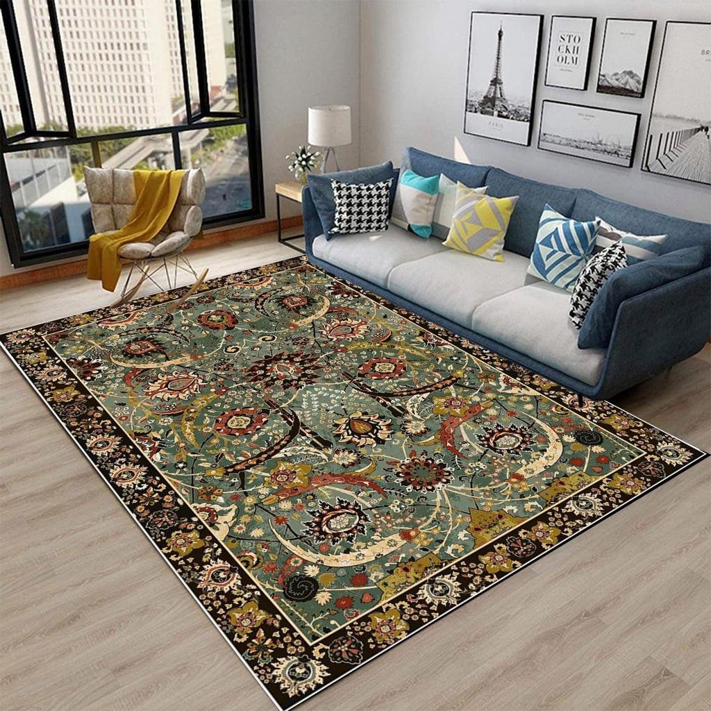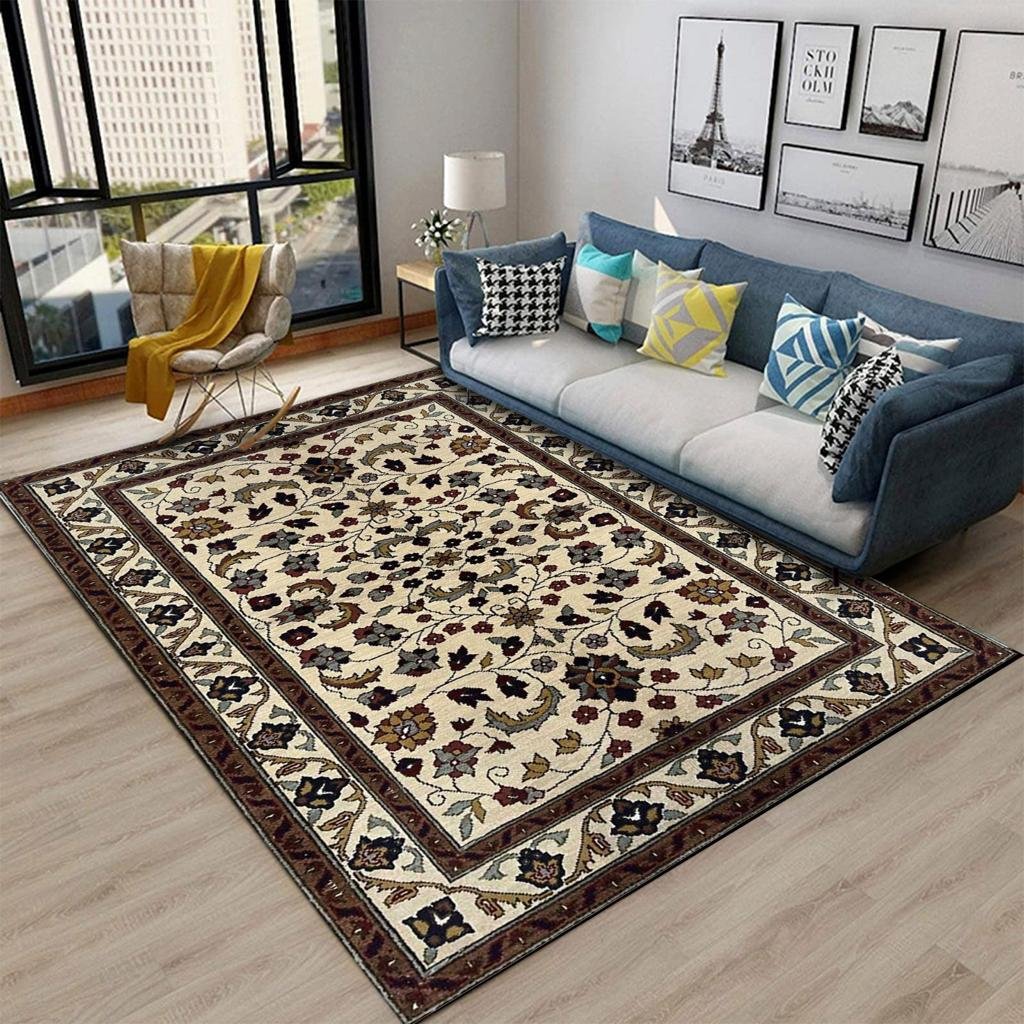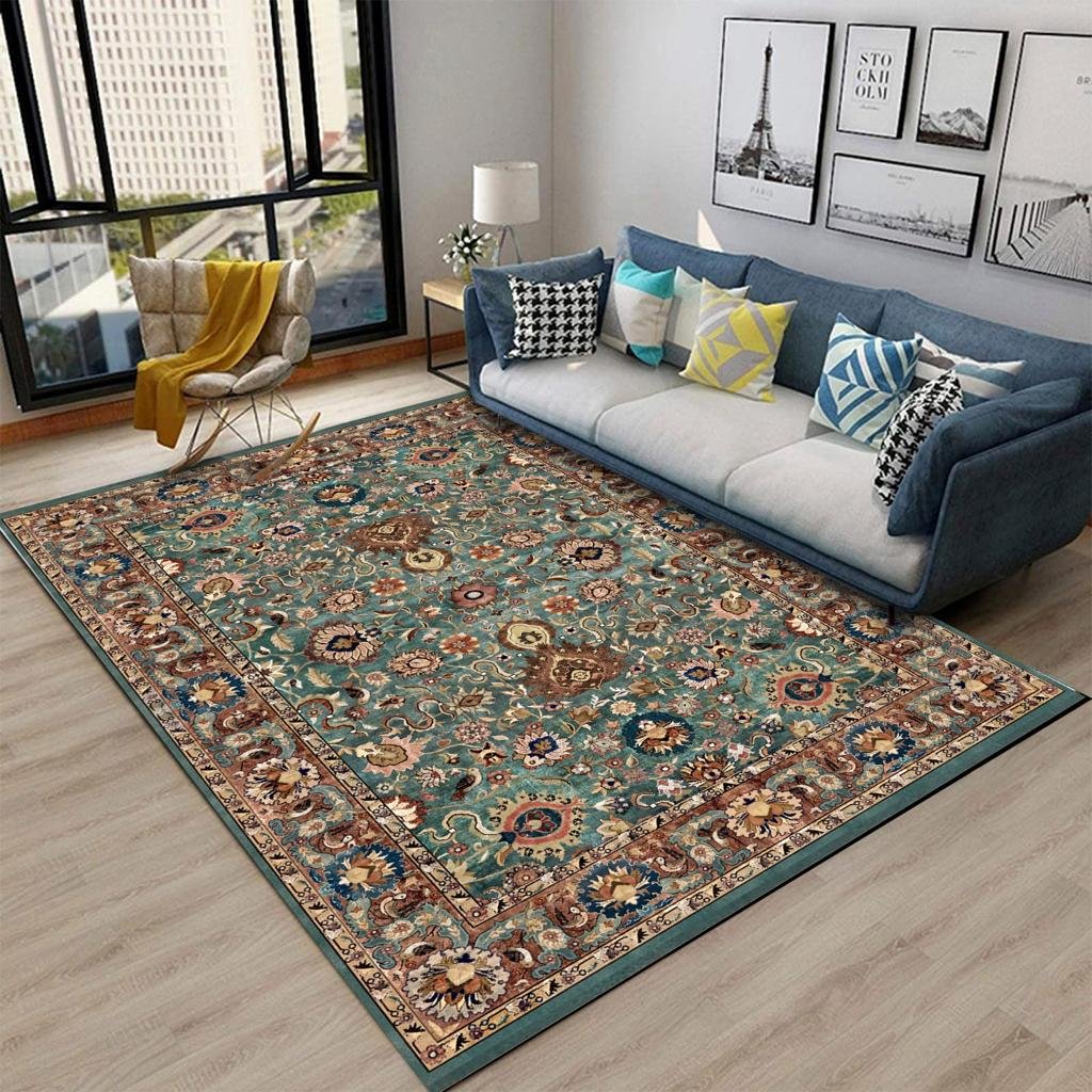 السجادة مصنعة من نسيج الشانيليا القطن المضاد للبكتريا و الحساسية و تتميز بسهولة الغسيل و منسوجة بشكل مسطح خفيف الوزن بدون وبر نهائي و الجزء الخلفي مصنع من قماش قطني كانفس مضاد للانزلاق و تكنولچيا الصناعة هي الطباعة